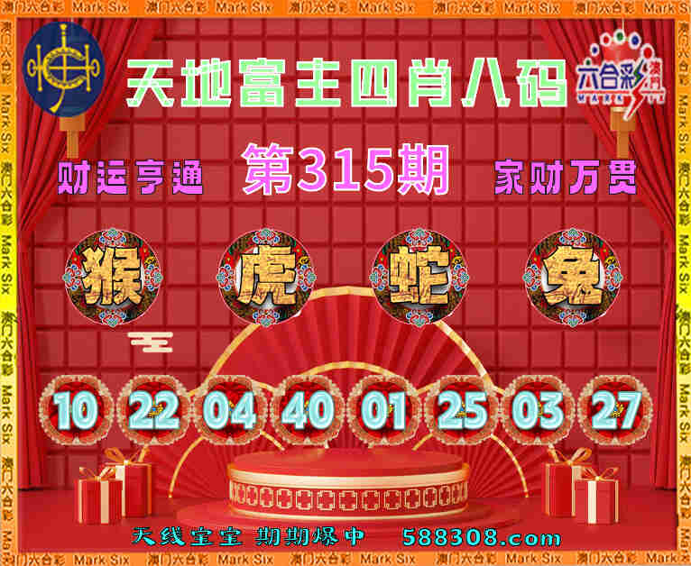 315期:【天地富主】 🐁四肖八码🐁【猴虎蛇兔】开:虎04准