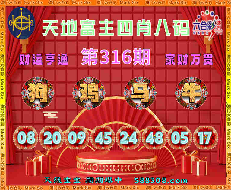 316期:【天地富主】 🐁四肖八码🐁【狗鸡马牛】开:马24准