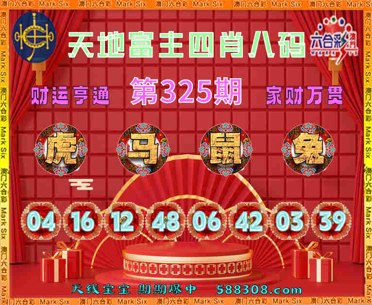 325期:【天地富主】 🐁四肖八码🐁【虎马鼠兔】开:虎04准