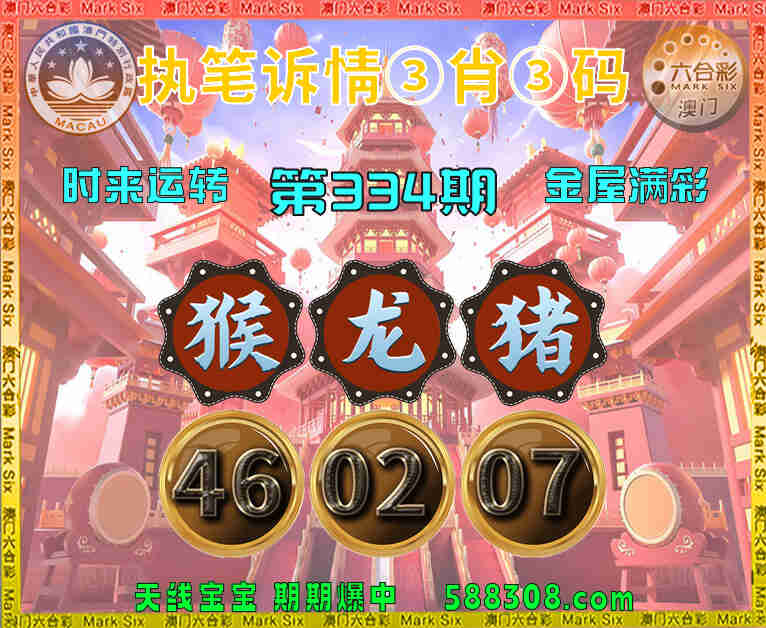 334期:《执笔诉情》 ⌚③肖③码⌚【猴龙猪】【46.02.07】开:猴46准