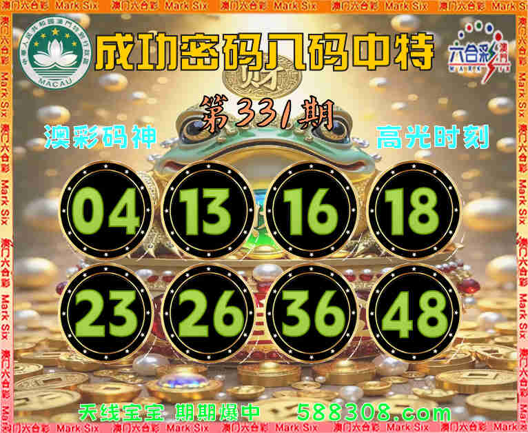 331期:『成功密码』 ♠️八码中特♠️开:26准【04.13.16.18.23.26.36.48】