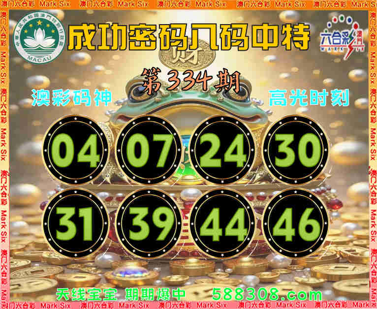 334期:『成功密码』 ♠️八码中特♠️开:46准【04.07.24.30.31.39.44.46】