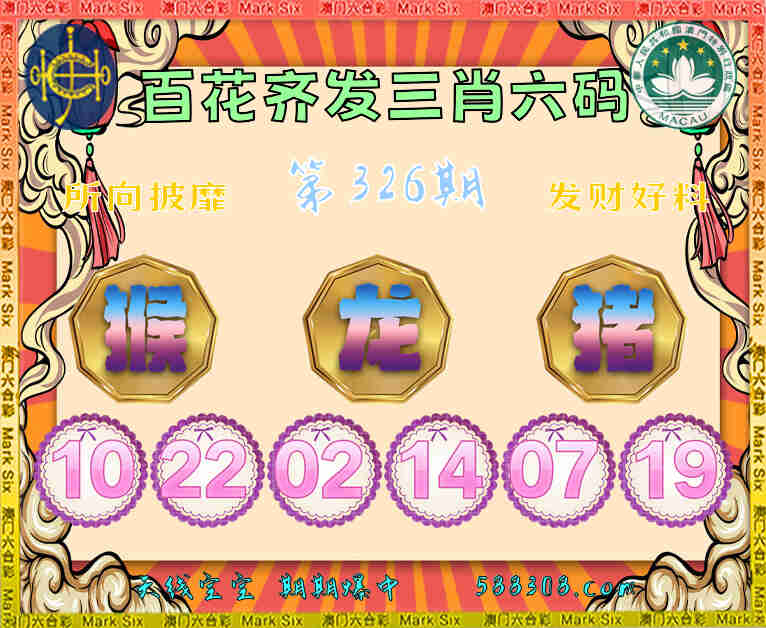 326期: 🍧『百花齐发』 🍧三肖六码🍧【猴龙猪】开:猪19准【10.22.02.14.07.19】