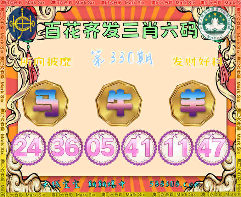 330期: 🍧『百花齐发』 🍧三肖六码🍧【马牛羊】开:马36准【24.36.05.41.11.47】