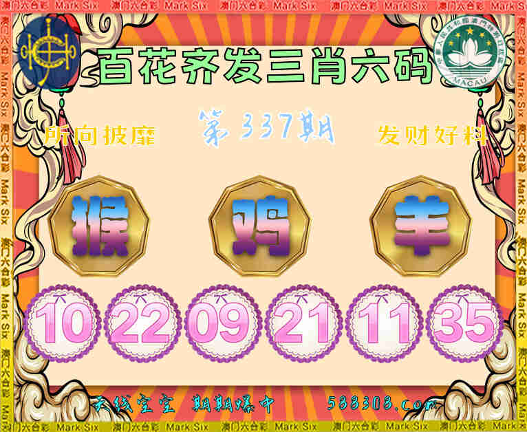 337期: 🍧『百花齐发』 🍧三肖六码🍧【猴鸡羊】开:鸡09准【10.22.09.21.11.35】