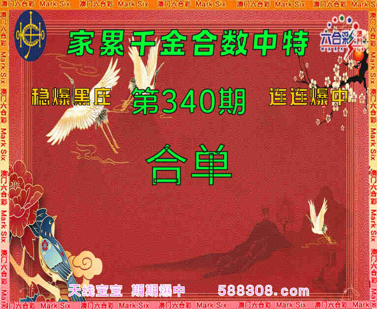 本资料最早发表在588308.com欢迎转发+关注340期:《家累千金》 👚合数中特👚【合单】开:16合单准