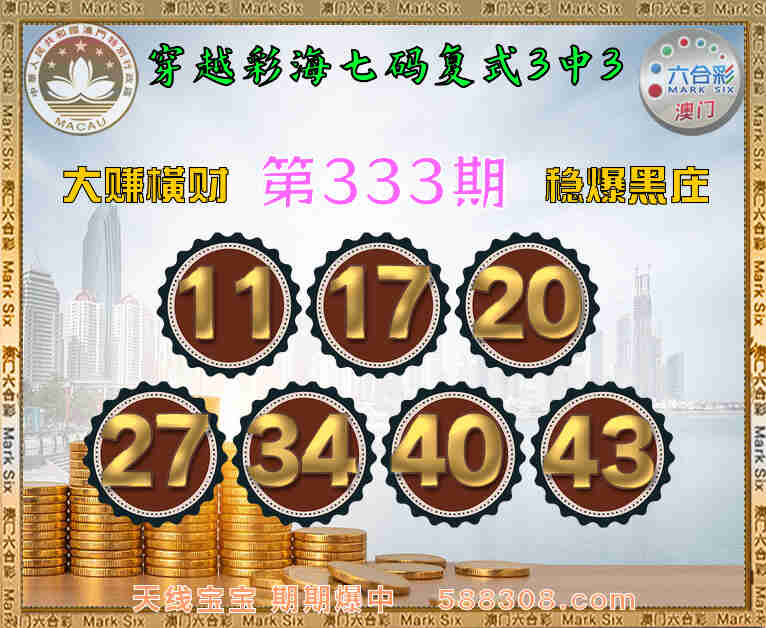 333期:『穿越彩海』 🐁七码复式3中3🐁【11.17.20.27.34.40.43】
