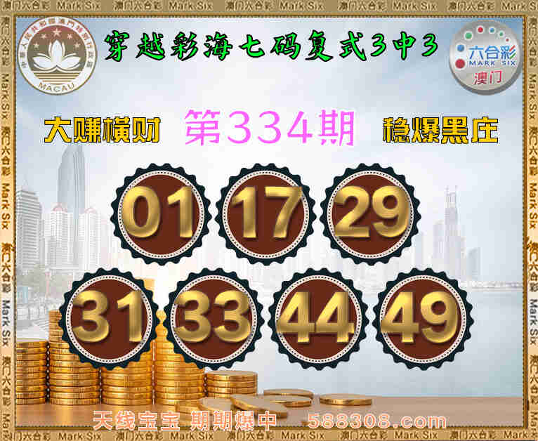 334期:『穿越彩海』 🐁七码复式3中3🐁【01.17.29.31.33.44.49】