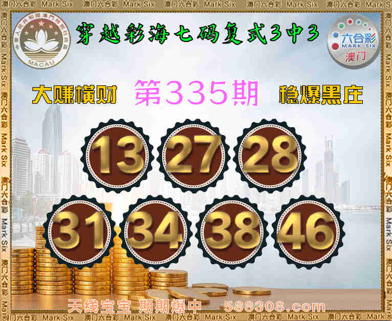 335期:『穿越彩海』 🐁七码复式3中3🐁【13.27.28.31.34.38.46】