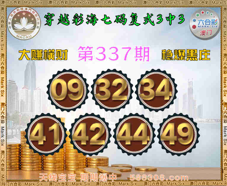 337期:『穿越彩海』 🐁七码复式3中3🐁【09.32.34.41.42.44.49】
