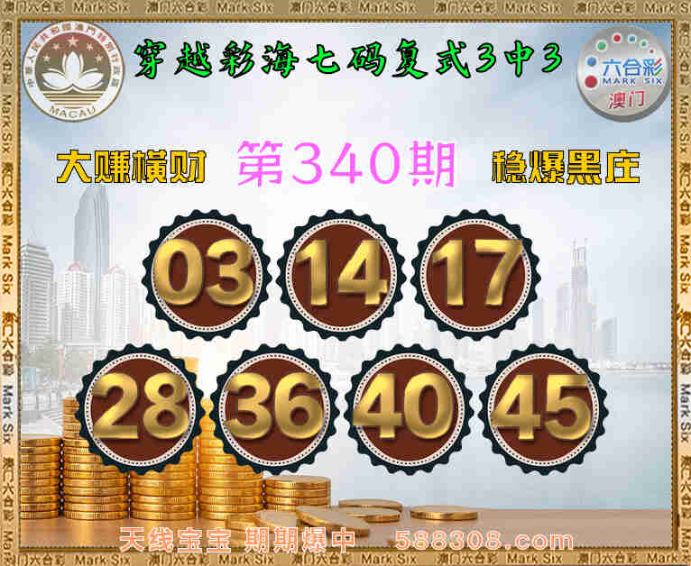 340期:『穿越彩海』 🐁七码复式3中3🐁【03.14.17.28.36.40.45】
