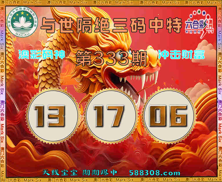 333期: 🥫『与世隔绝』 🥫三码中特🥫【13.17.06】开:06准
